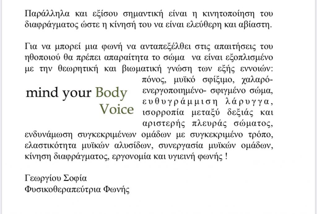 Σεμινάριο: Γνωρίζω την φωνή μέσα από το σώμα
